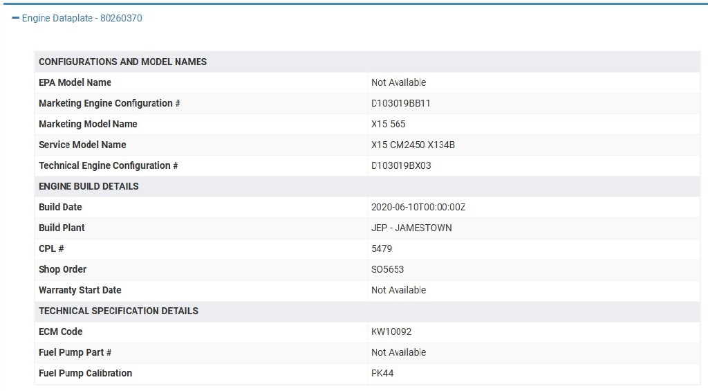 CUMMINS X15 CUMMINS X15 2020 ENGINE ASSEMBLY